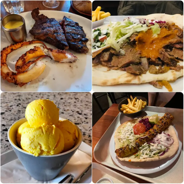 I tried the chicken doner kebab and it was delicious. The chicken kubideh and chelo kebab are also worth a try, and portions are more than enough for the price. If you’re vegetarian or vegan, there are plenty of options like stuffed aubergines. Some people rave about the saffron ice cream, too, though it’s a bit of an acquired taste.