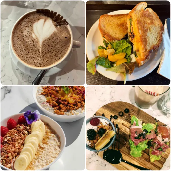 I ordered an acai bowl, avocado toast, and fresh orange juice. My husband tried the spicy hummus toast and then topped it off with a latte he’d been craving all trip — it made his day. I’m more into tea, so I got their ginseng green tea, which was super refreshing.
