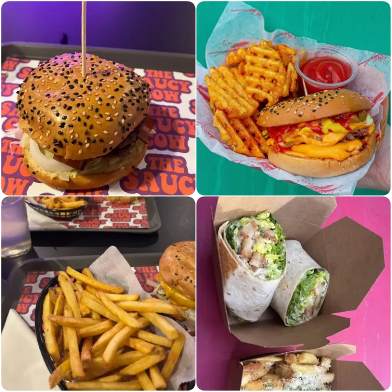 We wanted somewhere fun and relaxed for dinner, so we checked out The Saucy Cow in Temple Bar. The place has a funky vibe with bold colors and an industrial look. Everything on the menu is 100% plant-based, and you can tell they put a lot of care into their food.